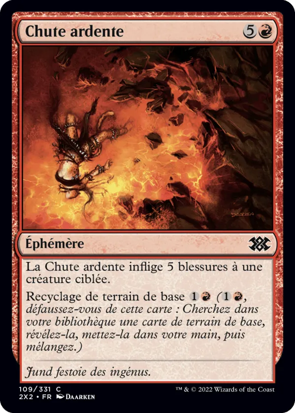 La Chute ardente inflige 5 blessures à une créature ciblée.