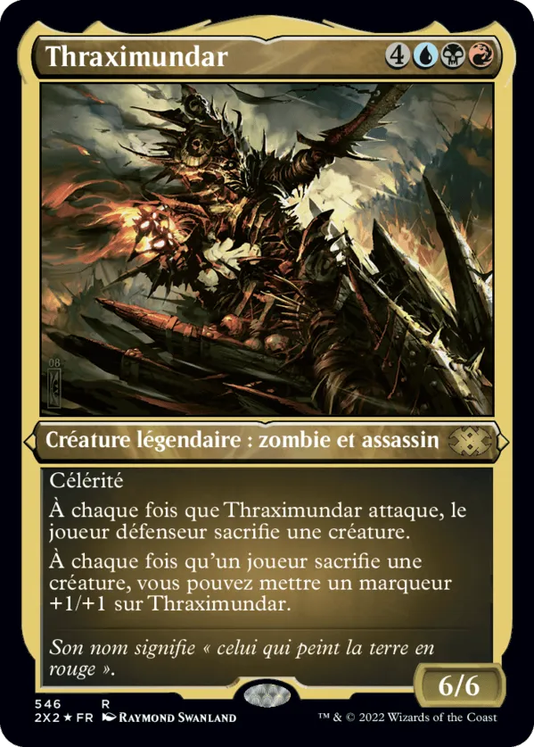 À chaque fois que Thraximundar attaque, le joueur défenseur sacrifie une créature.