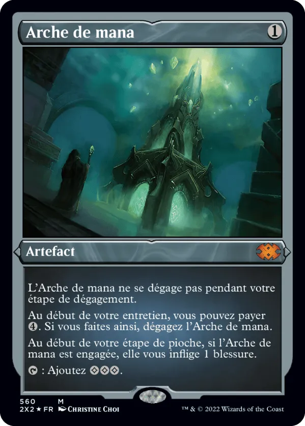 Au début de votre étape de pioche, si l'Arche de mana est engagée, elle vous inflige 1 blessure. : Ajoutez %.