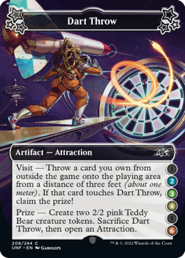 Prix — Créez deux jetons de créature 2/2 rose Teddy Bear. Sacrifiez Dart Throw, puis ouvrez une attraction.