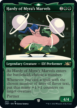 À chaque fois que vous lancez un sort avec le nombre choisi de lignes de texte d'ambiance, mettez autant de marqueurs +1/+1 sur une créature ciblée.