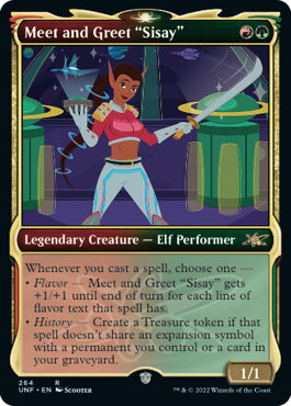 • Flavor — Meet and Greet "Sisay' gets +1/+1 until end of turn for each line of flavor text that spell has.