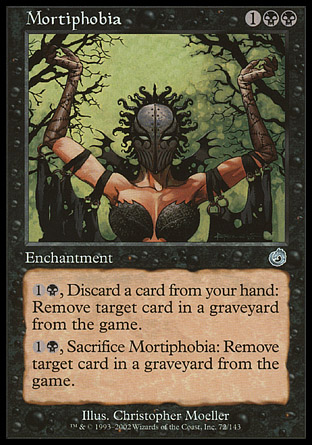 , Sacrifice Mortiphobia: Exile target card from a graveyard.