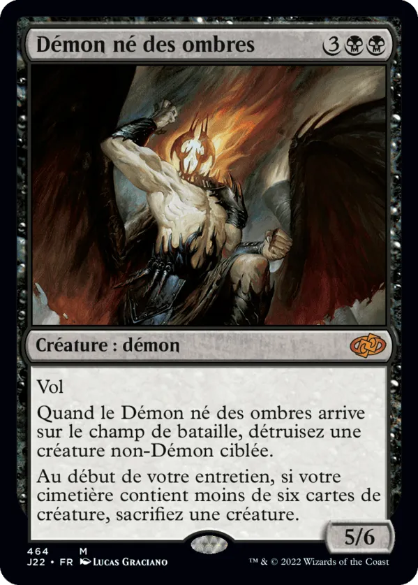 Quand Démon né des ombres arrive sur le champ de bataille, détruisez la créature non-démon ciblée.