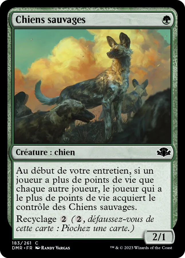 Au début de votre entretien, si un joueur a plus de points de vie que chacun des autres joueurs, le joueur avec le plus de points de vie acquiert le contrôle des Chiens sauvages.