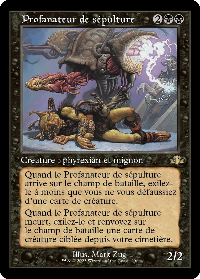Quand le Profanateur de sépulture meurt, exilez le Profanateur de sépulture et renvoyez la carte de créature ciblée depuis votre cimetière sur le champ de bataille.