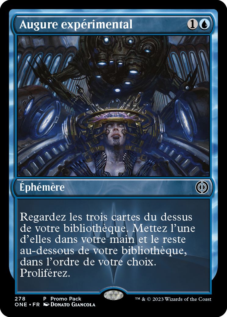 Regardez les trois cartes du dessus de votre bibliothèque. Mettez l'une d'elles dans votre main et le reste au-dessous de votre bibliothèque dans l'ordre de votre choix. Proliférez.