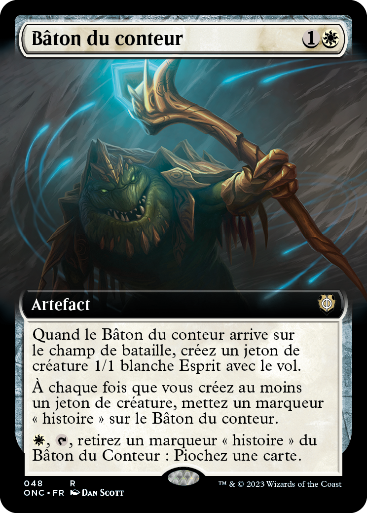 Quand le Bâton du conteur arrive sur le champ de bataille, créez un jeton de créature 1/1 blanche Esprit avec le vol.