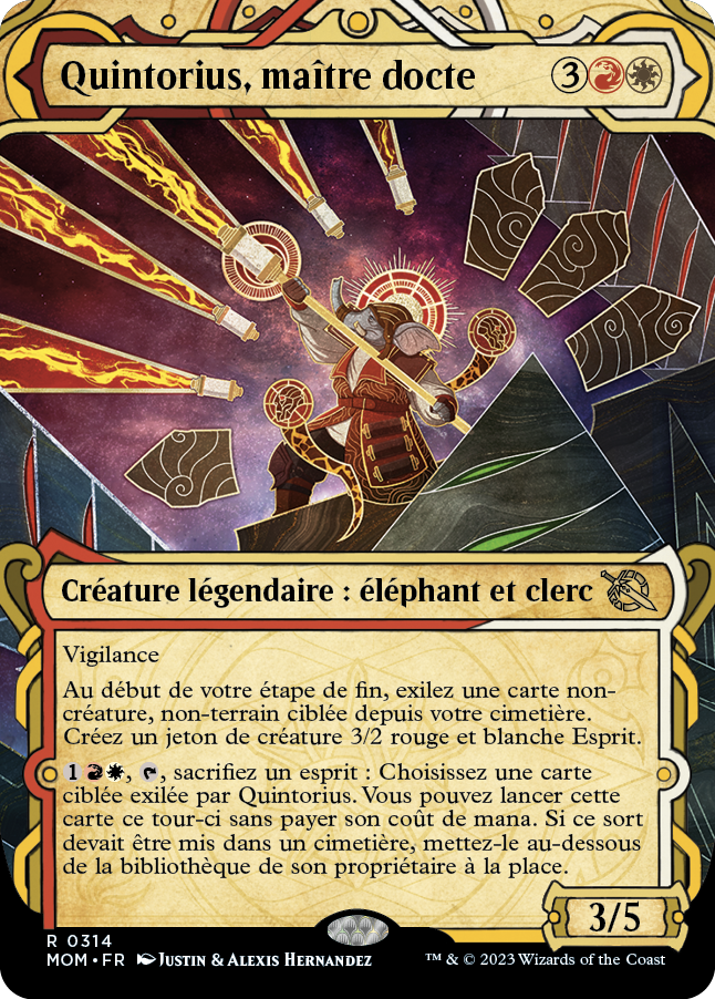 , sacrifiez un esprit : Choisissez une carte ciblée exilée par Quintorius. Vous pouvez lancer cette carte ce tour-ci sans payer son coût de mana. Si ce sort devait être mis dans a cimetière, mettez-le au-dessous de la bibliothèque de son propriétaire à la place.Vous n'êtes pas connecté ! connectez-vous ou inscrivez-vous pour poster un commentaire