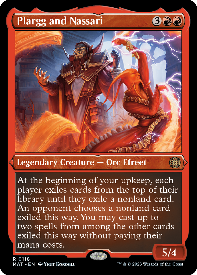 Au début de votre entretien, chaque joueur exile des cartes du dessus de sa bibliothèque jusqu'à ce qu'il exile une carte a non-terrain. Un adversaire choisit une carte non-terrain exilée de cette manière. Vous pouvez lancer jusqu'à deux sorts parmi les autres cartes exilées de cette manière sans payer leurs coûts de mana.
