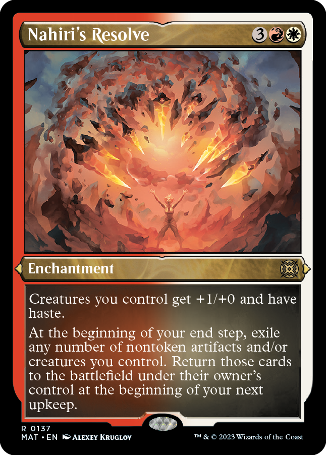 Au début de votre étape de fin, exilez n'importe quel nombre d'artefacts et/ou de créatures non-jeton que vous contrôlez. Renvoyez ces cartes sur le champ de bataille sous le contrôle de leur propriétaire. au début de votre prochain entretien.