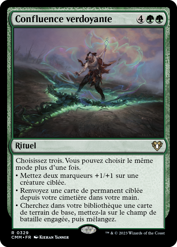 • Cherchez dans votre bibliothèque une carte de terrain de base, mettez-la sur le champ de bataille engagée, puis mélangez.