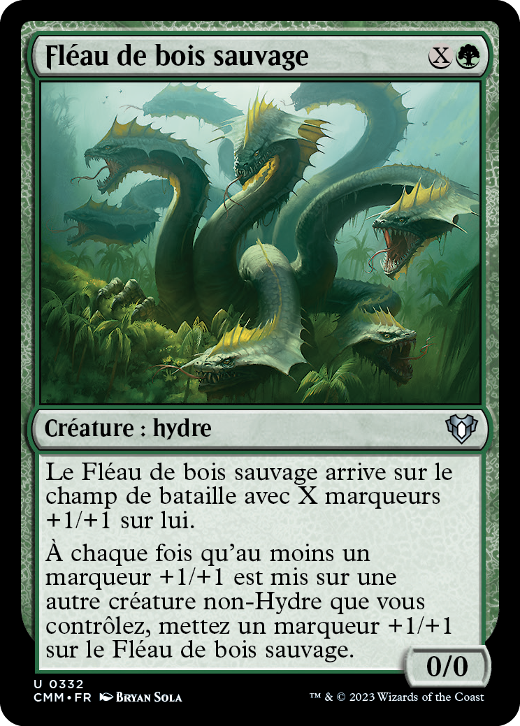 À chaque fois qu'au moins un marqueur +1/+1 est mis sur une autre créature non-Hydre que vous contrôlez, mettez un marqueur +1/+1 sur le Fléau de bois sauvage.