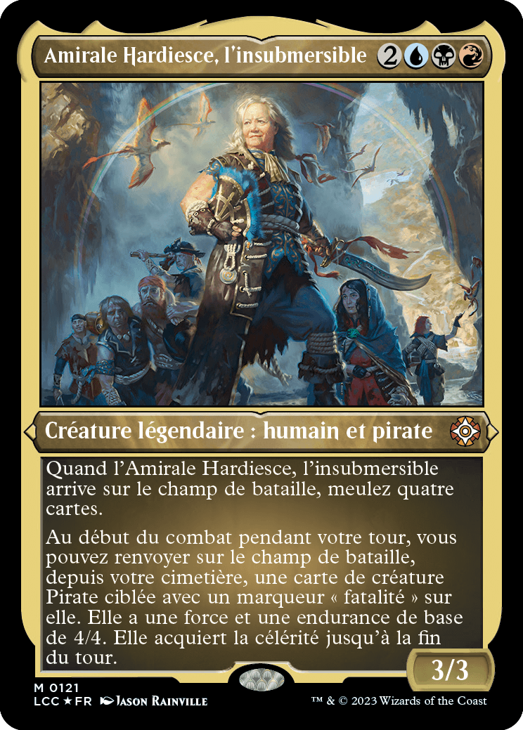 Au début du combat pendant votre tour, vous pouvez renvoyer sur le champ de bataille, depuis votre cimetière, une carte de créature Pirate ciblée avec un marqueur "fatalité" sur elle. Elle a une force et une endurance de base de 4/4. Elle acquiert la célérité jusqu'à la fin du tour.