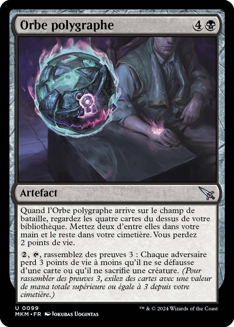 : Chaque adversaire perd 3 points de vie à moins qu'il ne se défausse d'une carte ou qu'il ne sacrifie une créature.