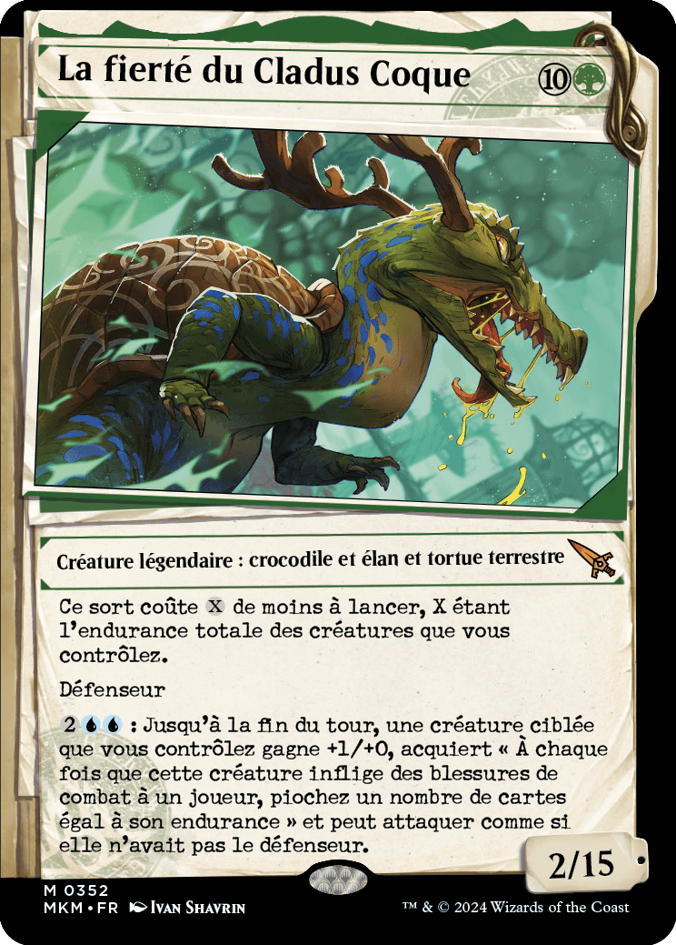 : Jusqu'à la fin du tour, une créature ciblée que vous contrôlez gagne +1/+0, acquiert "À chaque fois que cette créature inflige des blessures de combat à un joueur, piochez un nombre de cartes égal à son endurance" et peut attaquer comme si elle n'avait pas le défenseur.Vous n'êtes pas connecté ! connectez-vous ou inscrivez-vous pour poster un commentaire