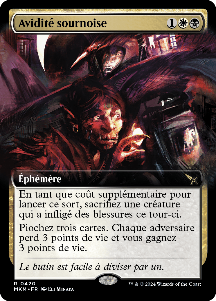 Piochez trois cartes. Chaque adversaire perd 3 points de vie et vous gagnez 3 points de vie.
