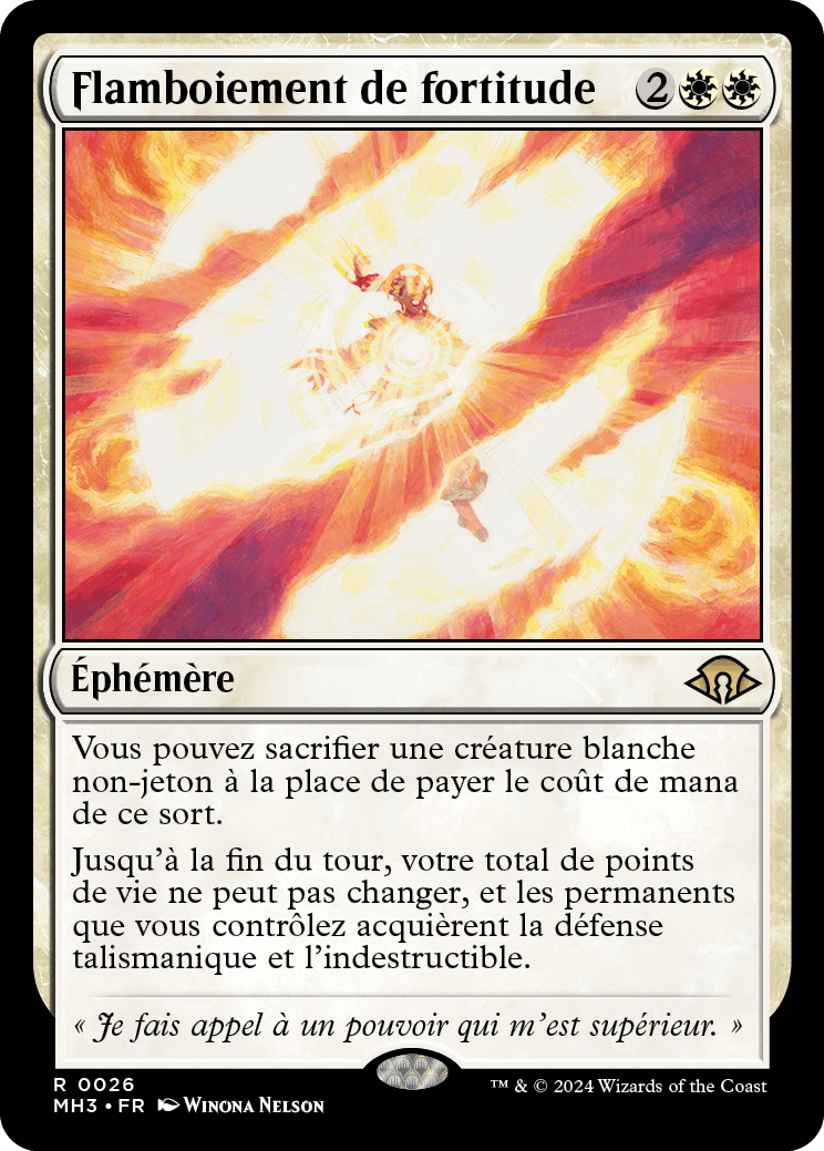 Jusqu'à la fin du tour, votre total de points de vie ne peut pas changer, et les permanents que vous contrôlez acquièrent la défense talismanique et l'indestructible.