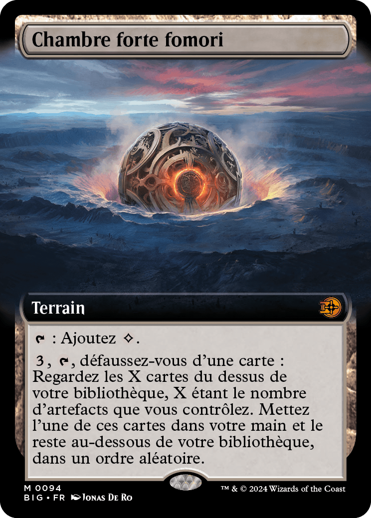 , défaussez-vous d'une carte : Regardez les X cartes du dessus de votre bibliothèque, X étant le nombre d'artefacts que vous contrôlez. Mettez l'une de ces cartes dans votre main et le reste au-dessous de votre bibliothèque dans un ordre aléatoire.