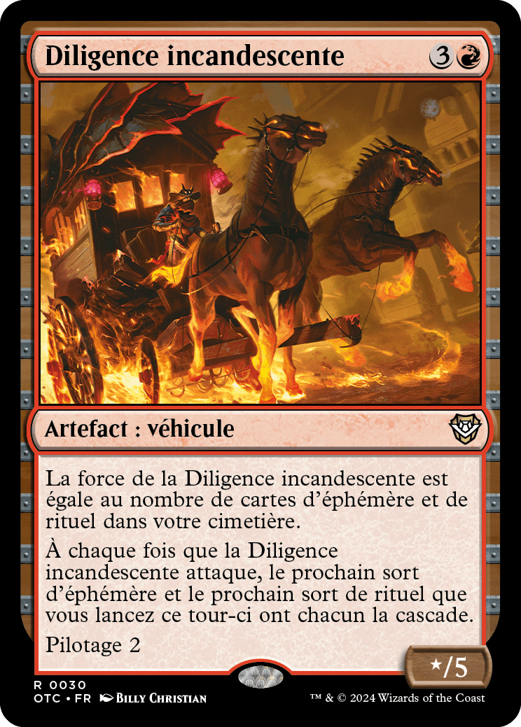 À chaque fois que la Diligence incandescente attaque, le prochain sort d'éphémère et le prochain sort de rituel que vous lancez ce tour-ci ont chacun la cascade.