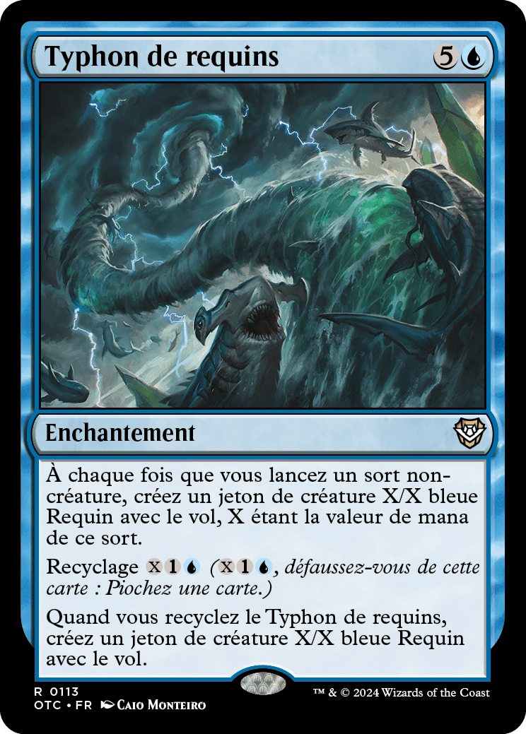 Quand vous recyclez le Typhon de requins, créez un jeton de créature X/X bleue Requin avec le vol.