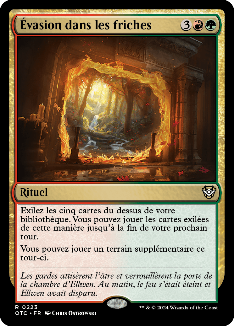 Exilez les cinq cartes du dessus de votre bibliothèque. Vous pouvez jouer les cartes exilées de cette manière jusqu'à la fin de votre prochain tour.