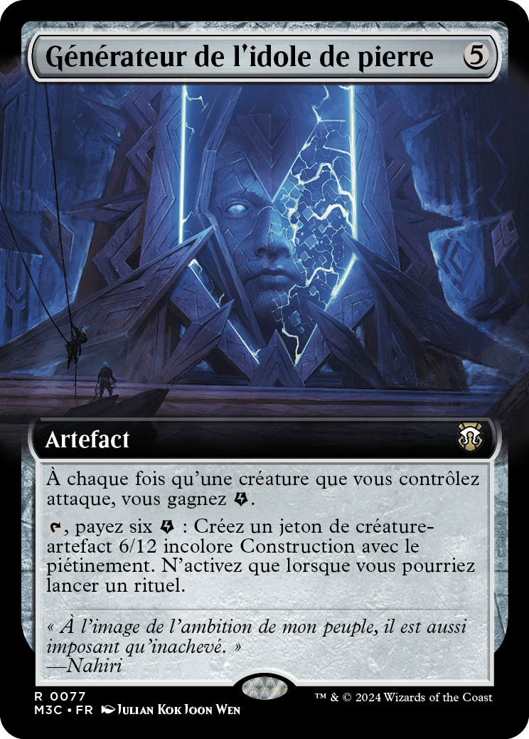 : Créez un jeton de créature-artefact 6/12 incolore Construction avec le piétinement. N'activez que lorsque vous pourriez lancer un rituel.
