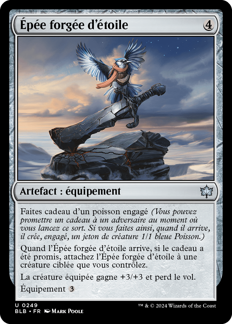 Quand l'Épée forgée d'étoile arrive, si le cadeau a été promis, attachez l'Épée forgée d'étoile à une créature ciblée que vous contrôlez.