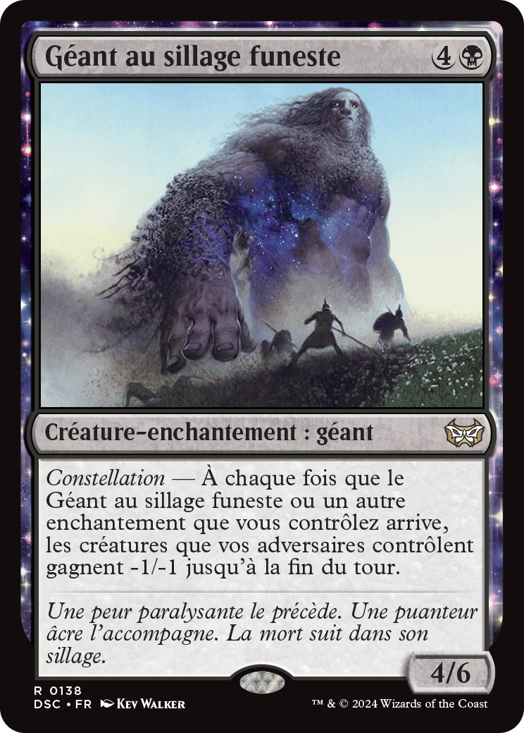 Constellation — À chaque fois que le Géant au sillage funeste ou un autre enchantement arrive sous votre contrôle, les créatures que vos adversaires contrôlent gagnent -1/-1 jusqu'à la fin du tour.