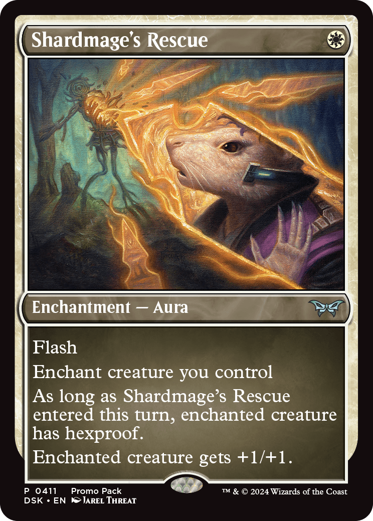 As long as Shardmage's Rescue entered this turn, enchanted creature has hexproof.