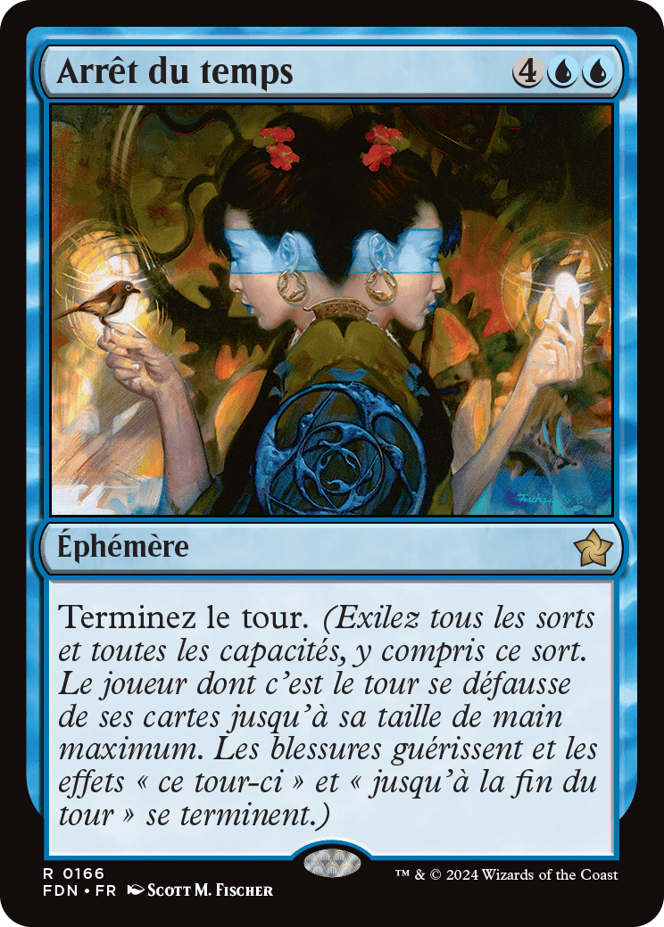 Terminez le tour. (Exilez tous les sorts et toutes les capacités sur la pile, y compris cette carte. Le joueur dont c'est le tour se défausse de cartes jusqu'à sa taille de main maximale. Les blessures disparaissent et les effets "ce tour-ci" et "jusqu'à la fin du tour" se terminent.).