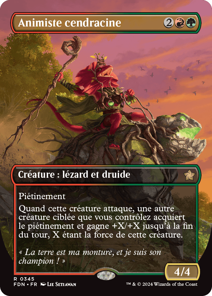 Quand cette créature attaque, une autre créature ciblée que vous contrôlez acquiert le piétinement et gagne +X/+X jusqu'à la fin du tour, X étant la force de cette créature.