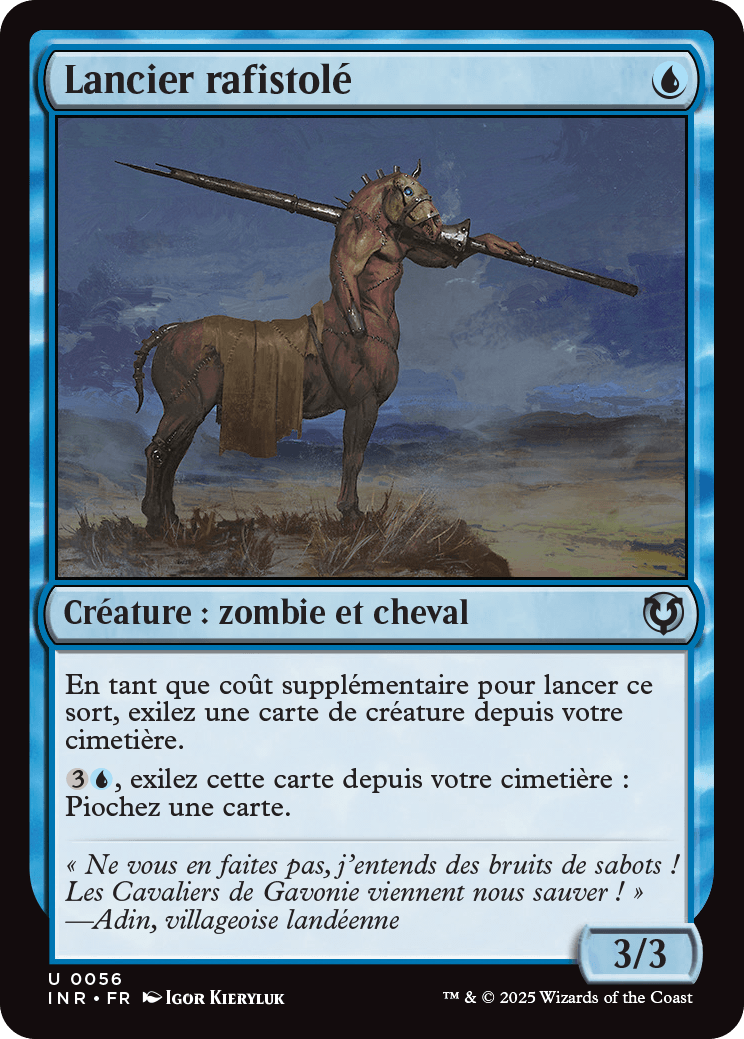 En tant que coût supplémentaire pour lancer ce sort, exilez une carte de créature depuis votre cimetière. , exilez le Lancier rafistolé depuis votre cimetière : Piochez une carte.