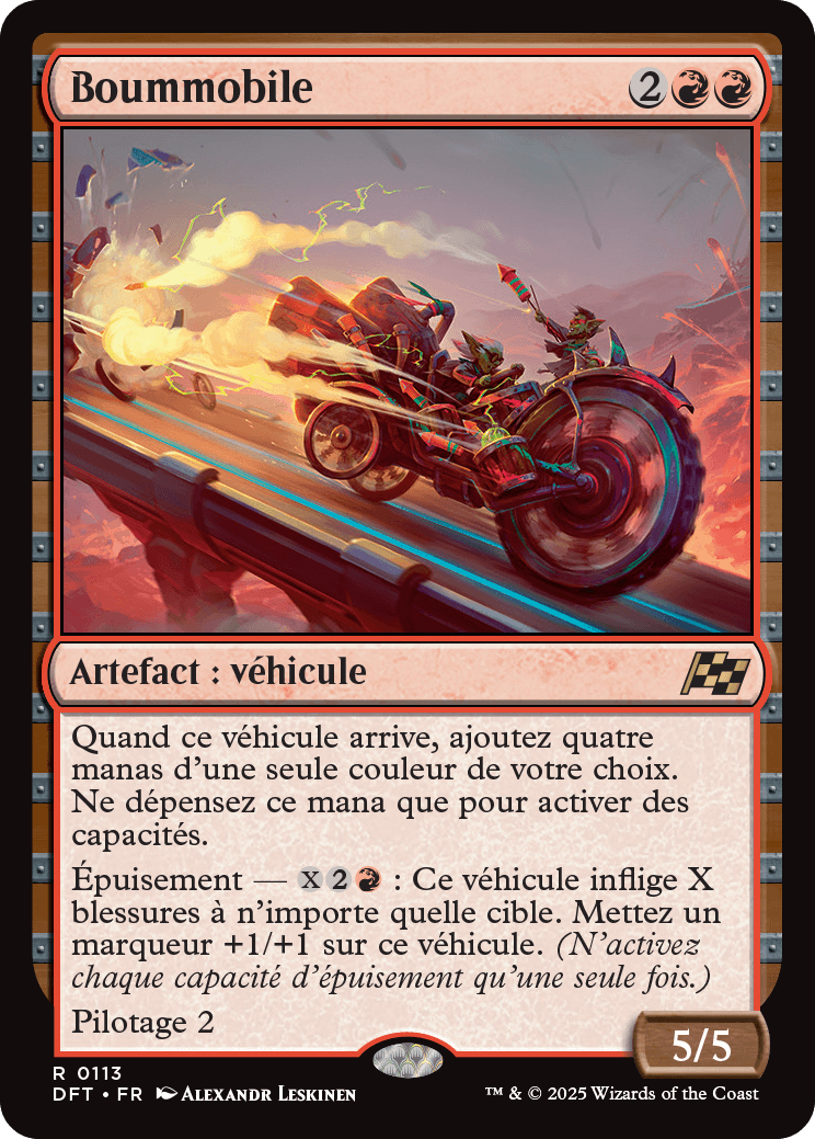 : Ce véhicule inflige X blessures à n'importe quelle cible. Mettez un marqueur +1/+1 sur ce véhicule. (N'activez chaque capacité d'épuisement qu'une seule fois.)