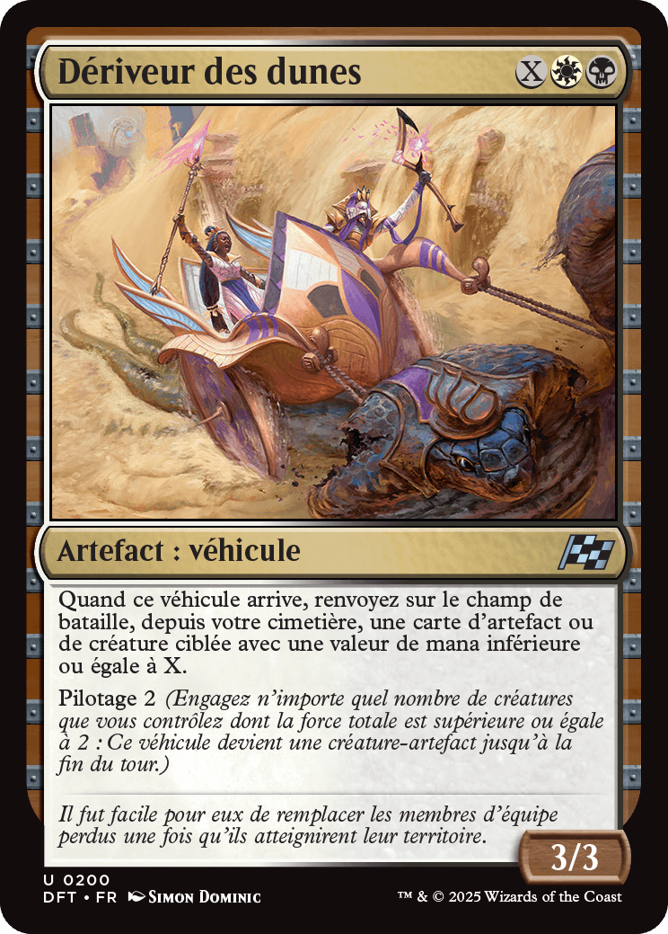 Quand ce véhicule arrive, renvoyez sur le champ de bataille, depuis votre cimetière, une carte d'artefact ou de créature ciblée avec une valeur de mana inférieure ou égale à .