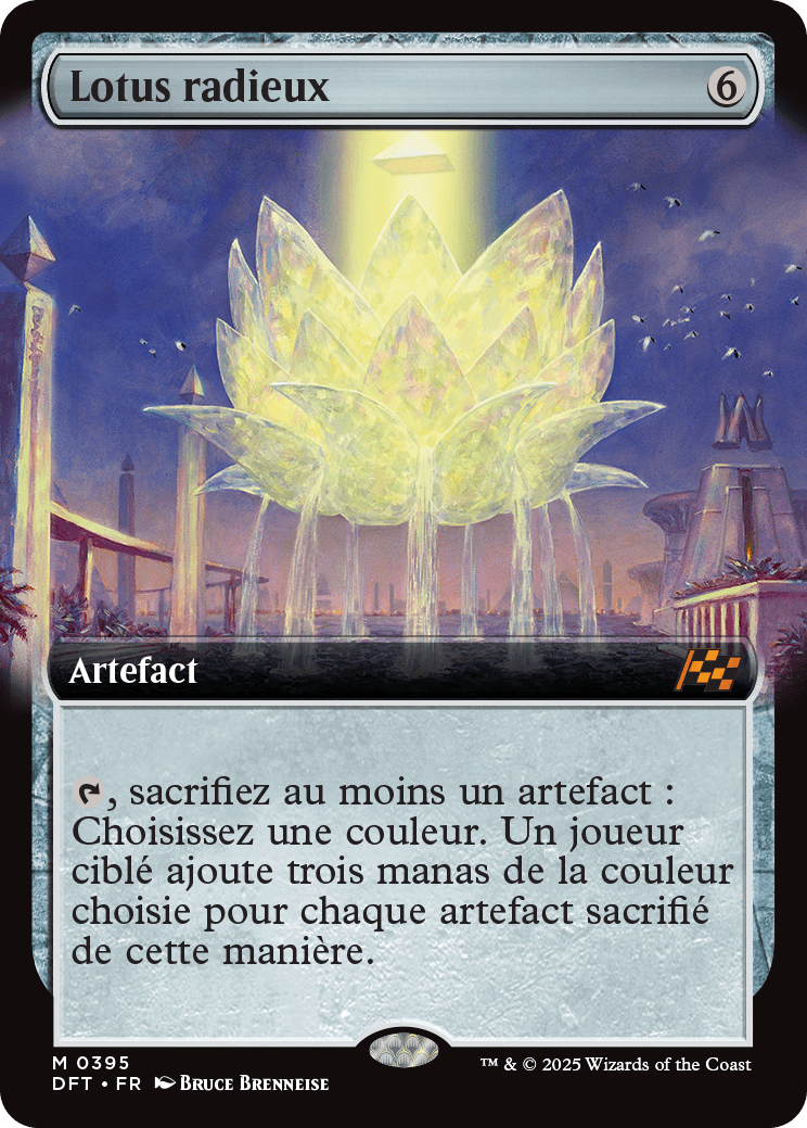 , sacrifiez au moins un artefact : Choisissez une couleur. Un joueur ciblé ajoute trois manas de la couleur choisie pour chaque artefact sacrifié de cette manière.