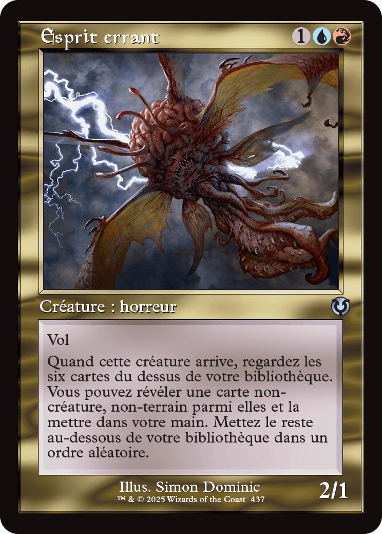 When Wandering Mind enters, look at the top six cards of your library. You may reveal a noncreature, nonland card from among them and put it into your hand. Put the rest on the bottom of your library in a random order.