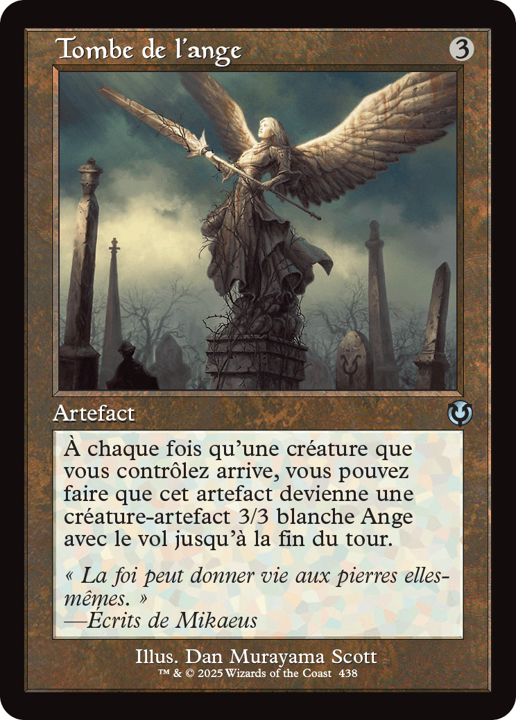 À chaque fois qu'une créature que vous contrôlez arrive, vous pouvez faire que la Tombe de l'ange devienne une créature-artefact 3/3 blanche Ange avec le vol jusqu'à la fin du tour.