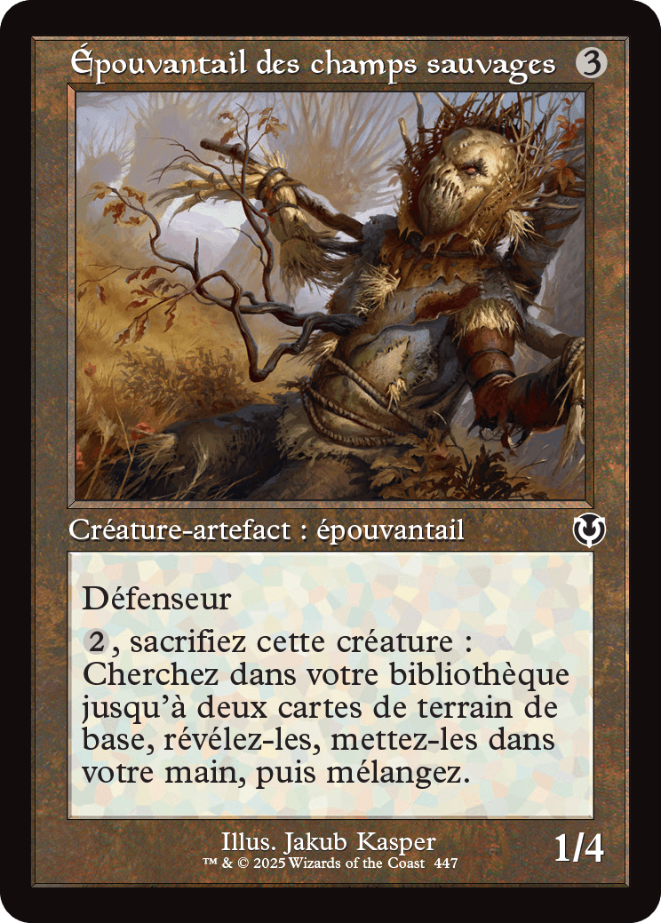 , sacrifiez l'Épouvantail des champs sauvages : Cherchez dans votre bibliothèque jusqu'à deux cartes de terrain de base, révélez-les, mettez-les dans votre main, puis mélangez.