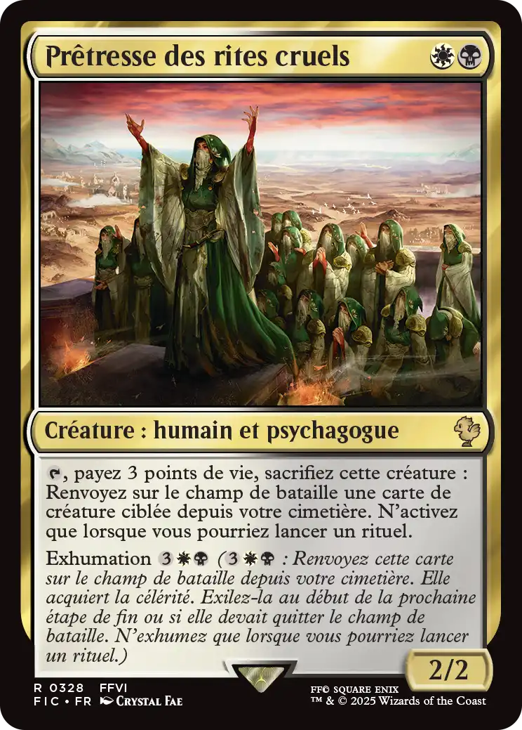 , payez 3 points de vie, sacrifiez cette créature : Renvoyez sur le champ de bataille une carte de créature ciblée depuis votre cimetière. N'activez que lorsque vous pourriez lancer un rituel.