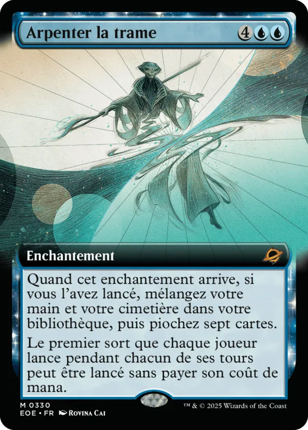Quand cet enchantement arrive, si vous l'avez lancé, mélangez votre main et votre cimetière dans votre bibliothèque, puis piochez sept cartes.