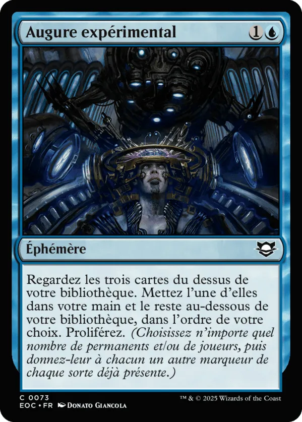 Regardez les trois cartes du dessus de votre bibliothèque. Mettez l'une d'elles dans votre main et le reste au-dessous de votre bibliothèque dans l'ordre de votre choix. Proliférez.