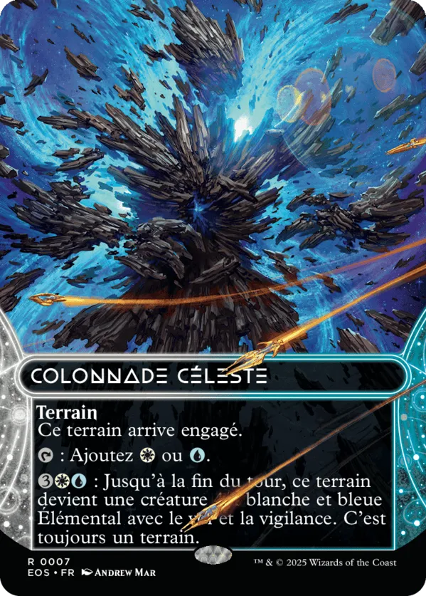 : Jusqu'à la fin du tour, ce terrain devient une créature 4/4 blanche et bleue Élémental avec le vol et la vigilance. C'est toujours un terrain.