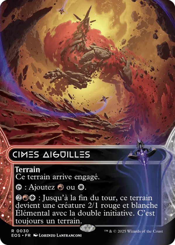 : Jusqu'à la fin du tour, ce terrain devient une créature 2/1 rouge et blanche Élémental avec la double initiative. C'est toujours un terrain.