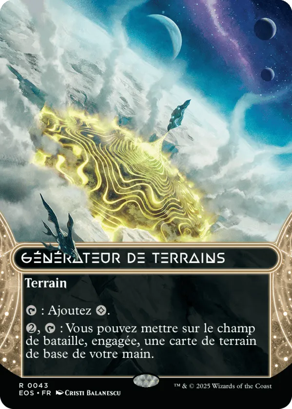 : Vous pouvez mettre sur le champ de bataille, engagée, une carte de terrain de base de votre main.