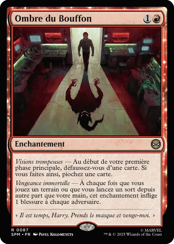 À chaque fois que vous jouez un terrain ou lancez un sort depuis autre part que votre main, cet enchantement inflige 1 blessure à chaque adversaire.