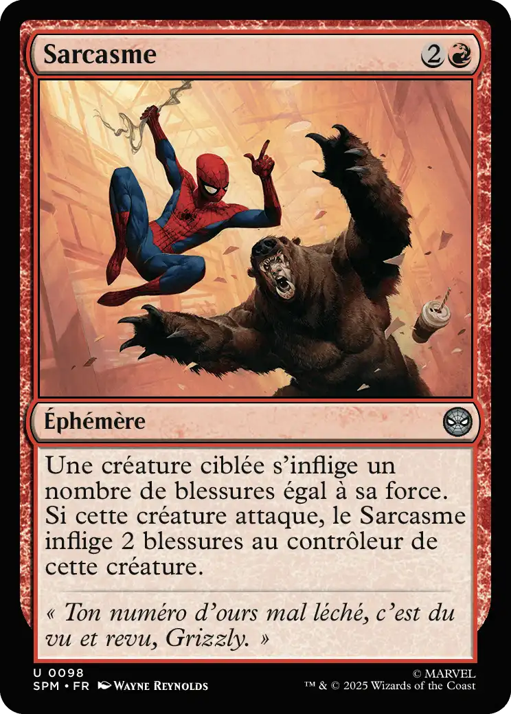 Une créature ciblée s'inflige à elle même un nombre de blessures égal à sa force. Si cette créature est attaquante, Wisecrack inflige 2 blessures au contrôleur de cette créature.