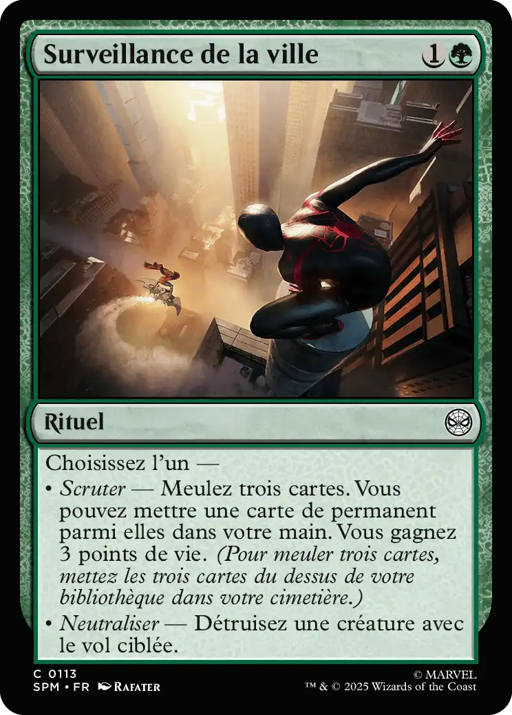 • Scruter — Meulez trois cartes. Vous pouvez mettez une carte de permanent parmi elles dans votre main. Vous gagnez 3 points de vie.