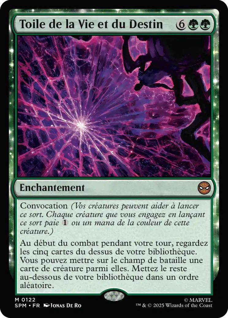 Au début du combat pendant votre tour, regardez les cinq cartes du dessus de votre bibliothèque. Vous pouvez mettre sur le champ de bataille une carte de créature parmi elles. Mettez le reste au-dessous de votre bibliothèque dans un ordre aléatoire.