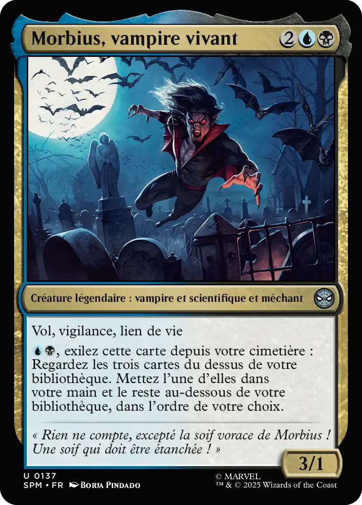 , exilez cette carte depuis votre cimetière : Regardez les trois cartes du dessus de votre bibliothèque. Mettez l'une d'elles dans votre main et le reste au-dessous de votre bibliothèque dans l'ordre de votre choix.Vous n'êtes pas connecté ! connectez-vous ou inscrivez-vous pour poster un commentaire